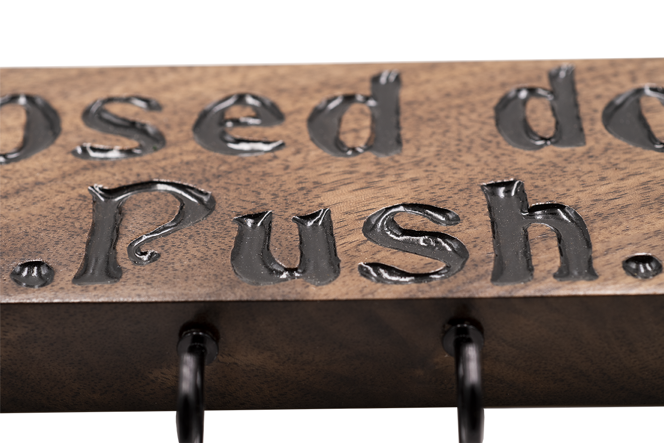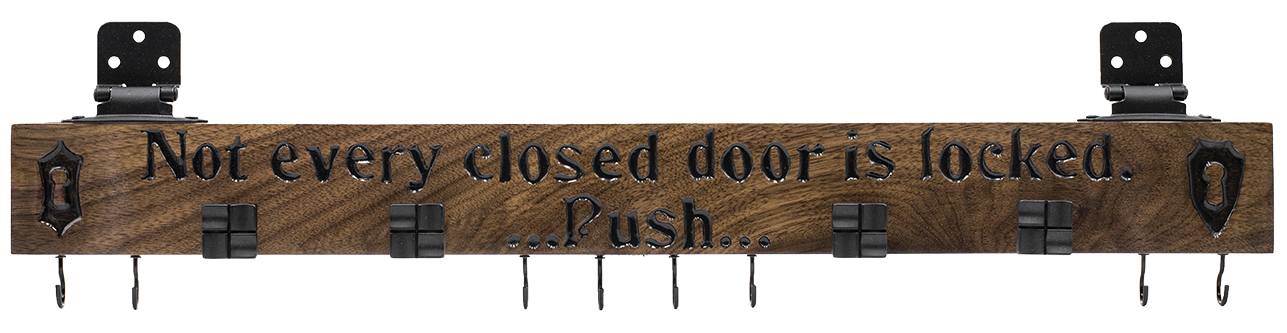 You can be inspired every single day as you walk out of your home. There’s no possibility of missing the contrasted phrase “Not every closed door is locked. …Push…” that I carved and stained into this beautiful piece of walnut. As you grab your keys and jacket from this rack before walking out your front door to start your day, the saying will be ingrained in your mind, giving you the positive power to push on those doors you thought were locked. Seize the day and make every push count!